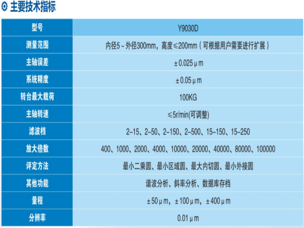 Y90D系列圓度測(cè)量?jī)x是以大承重高精度氣浮主軸為基準(zhǔn),采用計(jì)算機(jī)測(cè)量系統(tǒng)的轉(zhuǎn)臺(tái)式通用型圓度儀,適用于大型回轉(zhuǎn)體工件的的圓度、波紋度、同軸度等參數(shù)的測(cè)量,主要應(yīng)用于大型精密機(jī)械制領(lǐng)域。儀器主要由氣浮主軸、精密調(diào)平調(diào)心工作臺(tái)、花崗巖臺(tái)面和立柱、高精度電感測(cè)頭、精密旋轉(zhuǎn)編碼器、驅(qū)動(dòng)控制電箱、高精度測(cè)量電箱、空氣過(guò)濾干燥系統(tǒng)以及基于windows XP的專用測(cè)量分析軟件組成。
